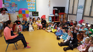 Las seños, Ana y Yolanda, el profe Jorge, y Yahiza, nuestra monitora escolar se disfrazaron acompañando al alumnado, pues esta actividad, también coincidió con el carnaval.
